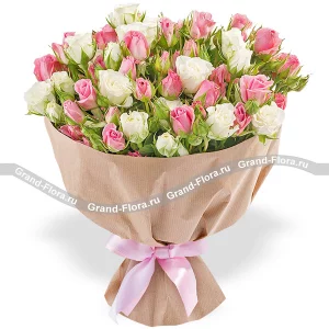 Любимой маме - шляпная коробка с розовыми и кремовыми кустовыми розами