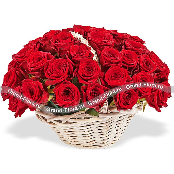 55 роз: роза красная - 55 шт., оазис, корзина.